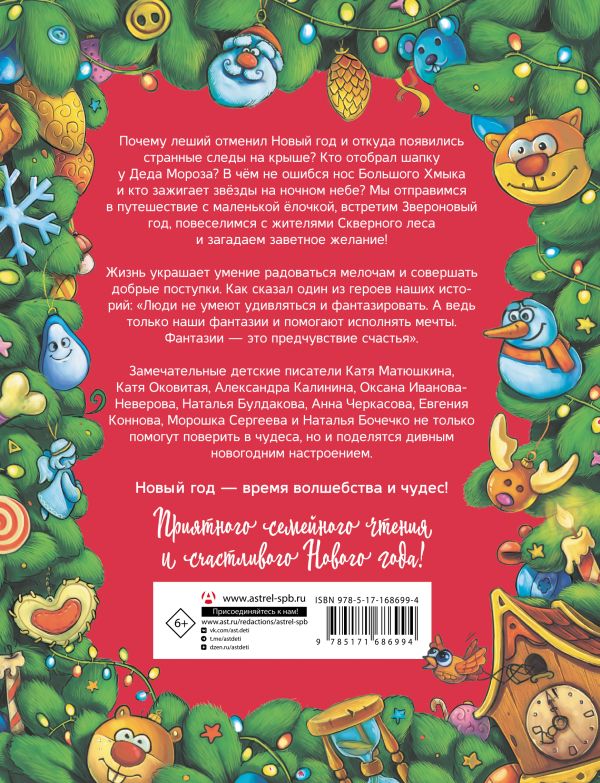 Замечательные детские писатели Катя Матюшкина, Катя Оковитая, Александра Калинина, Оксана Иванова-Неверова, Наталья Булдакова, Анна Черкасова, Евгения Коннова, Морошка Сергеева и Наталья Бочечко не только помогут поверить в чудеса, но и поделятся дивным новогодним настроением.