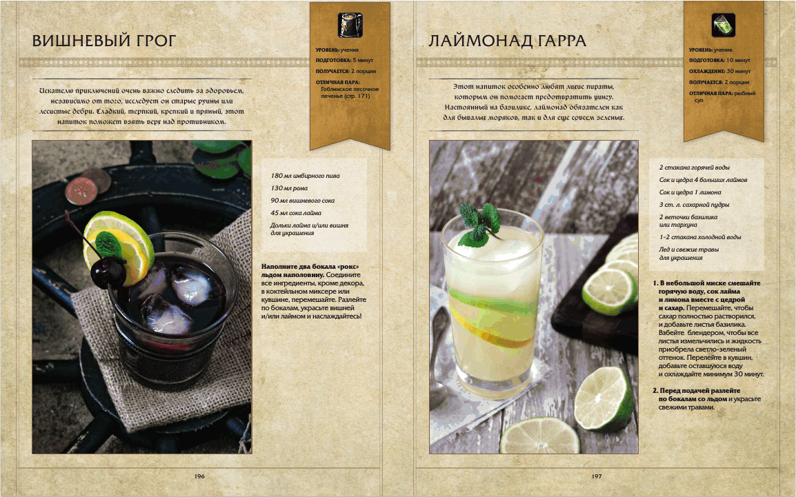 Ароматный Цветочный суп со специями идеально подойдет друидам, которые любят природу всем сердцем, а у орков снесет крышу от нежнейших Кабаньих ребрышек в пиве. Со всеми альтернативами для непонятных ингредиентов (если вдруг у вас не завалялось вырезки из химерока) вам обеспечен эффект Сытости. В каждой главе найдутся блюда для разных уровней кулинарного навыка, от новичка до эксперта.