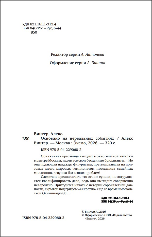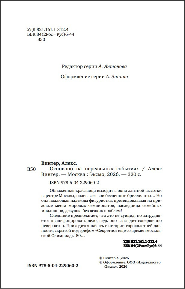 Обнаженная красавица выходит в окно элитной высотки в центре Москвы, надев все свои бесценные бриллианты… Но она подающая надежды фигуристка, претендовавшая на призовые места мировых чемпионатов, наследница семейных миллионов, девушка без всяких...