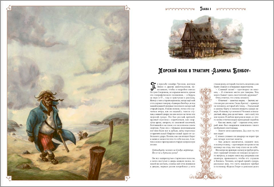 Молодому французскому художнику Этьену Фриесу принадлежит, наверное, самое необычное и запоминающееся визуальное прочтение. Образы Джима Хокинса, старого пирата Билли Бонса, одноногого Джона Сильвера, настоящего джентльмена доктора Ливси и всех остальных героев самой знаменитой истории о сундуке с сокровищами, спрятанном на далёком необитаемом острове, наверняка будут интересны взрослым и детям.