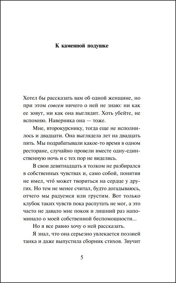 Автобиографическая ли это книга? И да, и нет. Мураками расскажет вам восемь историй, а вы уже сами решите, верите ли вы ему. На страницах книги вас будет поджидать девушка, пишущая танка и выкрикивающая чужое имя в момент наивысшего наслаждения.