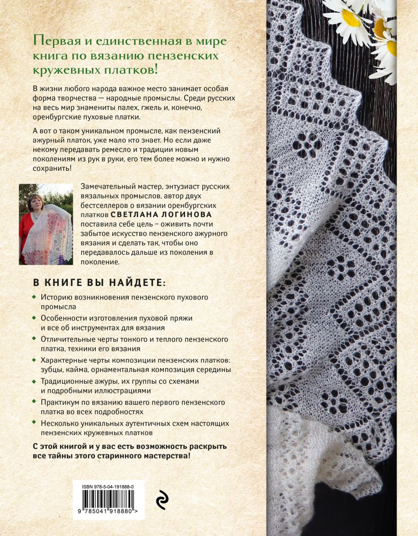 В новой книге замечательный русский мастер Светлана Логинова, автор двух бестселлеров об Оренбургском пуховом платке, взялась раскрыть все тайны почти забытого старинного ремесла! И перед нами снова Пензенский платок предстает не только в правилах, принципах и техниках вязания, определенном наборе красивейших орнаментов и тонкостях подготовки и выбора пряжи, но и в настоящих произведениях вязального искусства! Вы сможете воспроизвести любое изделие, которое когда-то вязали пензенские мастерицы, по понятным и подробными инструкциям, четким схемам и многочисленным подсказкам в книге! С этой книгой и у вас есть возможность раскрыть все тайны этого старинного мастерства!