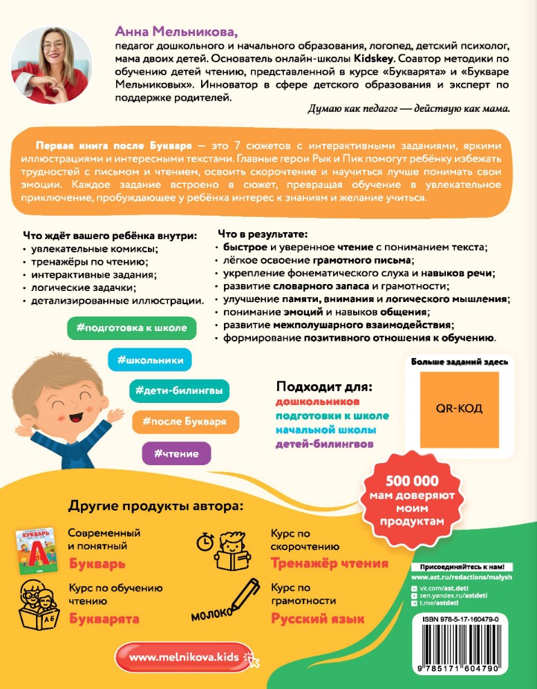 Динамичный сюжет с комиксами и квестами, запоминающиеся персонажи, специальные игровые упражнения для улучшения техники чтения и развития эмоционального интеллекта – в книге есть всё необходимое, чтобы вовлечь ребёнка в чтение с интересом и без усилий с вашей стороны.