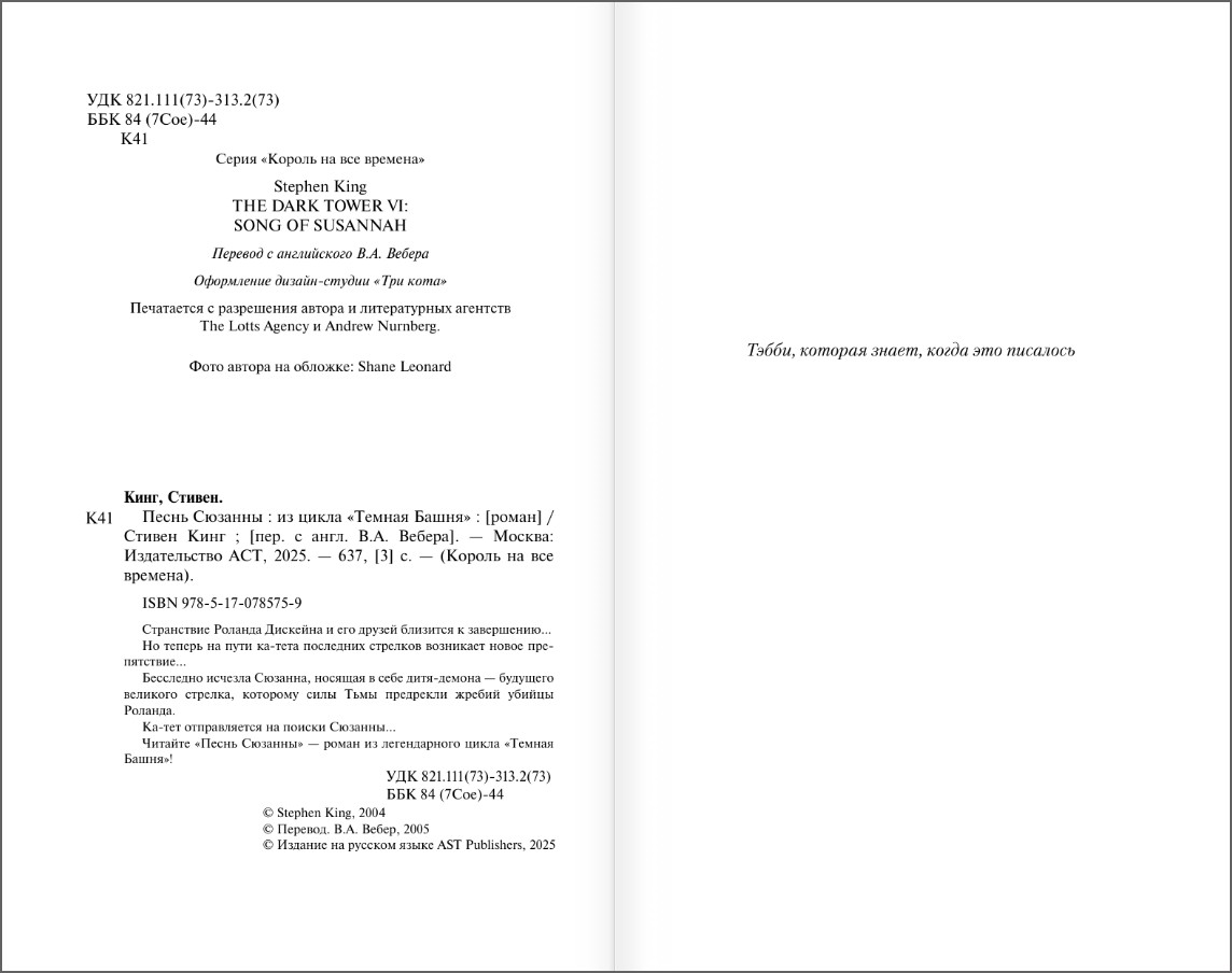 Роман «Песнь Сюзанны» знаменитого американского прозаика Стивена Кинга был впервые опубликован в 2004 году и стал предпоследней книгой культового фэнтезийного цикла «Темная Башня», в котором рассказывается о путешествии Роланда Дискейна – последнего члена знаменитого в его мире ордена стрелков.
