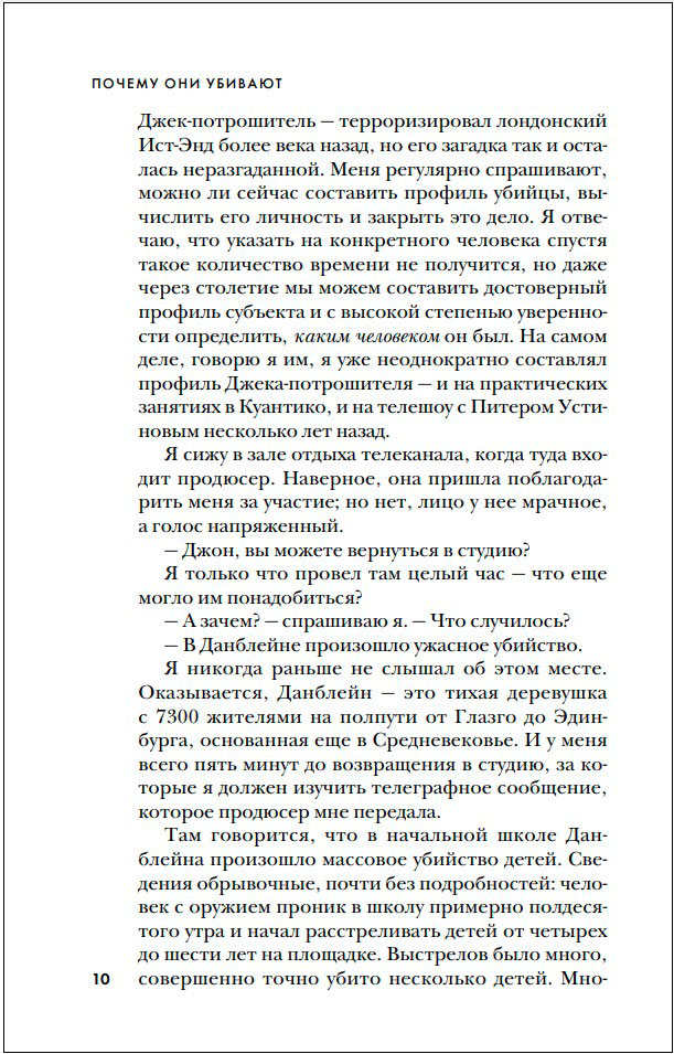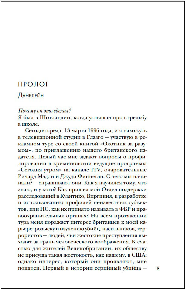 Исследуя разные мотивы и методы преступлений, Джон Дуглас рассказывает о самых распространенных типах серийных и массовых убийц. Он выделяет общие элементы в их биографиях и показывает, как эти знания могут применяться к другим видам преступлений. На примере захватывающих историй – дела Харви Ли Освальда, Унабомбера, убийства Джанни Версаче и многих других – легендарный «Охотник за разумом» погружает нас в разум насильников, отравителей, террористов, поджигателей и ассасинов. Он наглядно объясняет, почему люди идут на те или иные преступления, и учит распознавать потенциальных убийц, пока еще не стало слишком поздно…