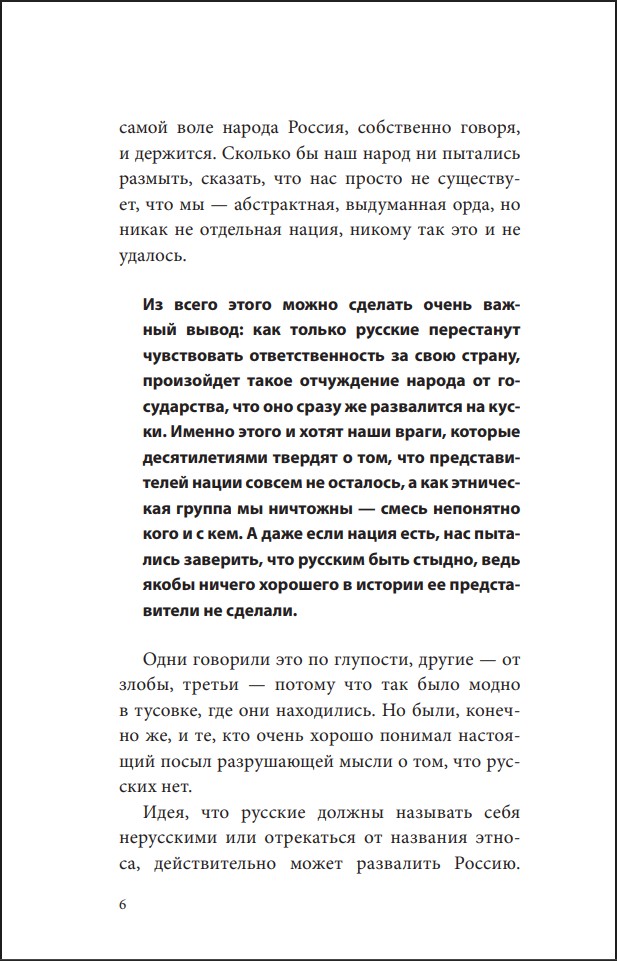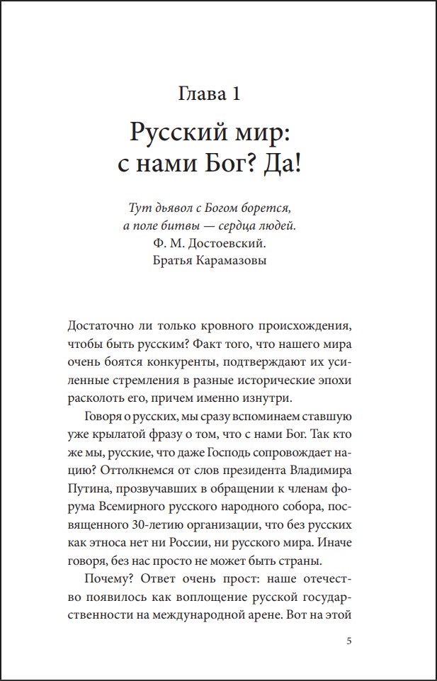 Слова авторов находят подкрепление в отсылках к историческому прошлому и неоспоримых фактах из настоящего. Но главной опорой для рассуждений является православная вера, что, на пути сомнений и испытаний, превращает книгу в настоящий путеводитель к Богу. Богу, который и сам всегда с нами, с русскими.