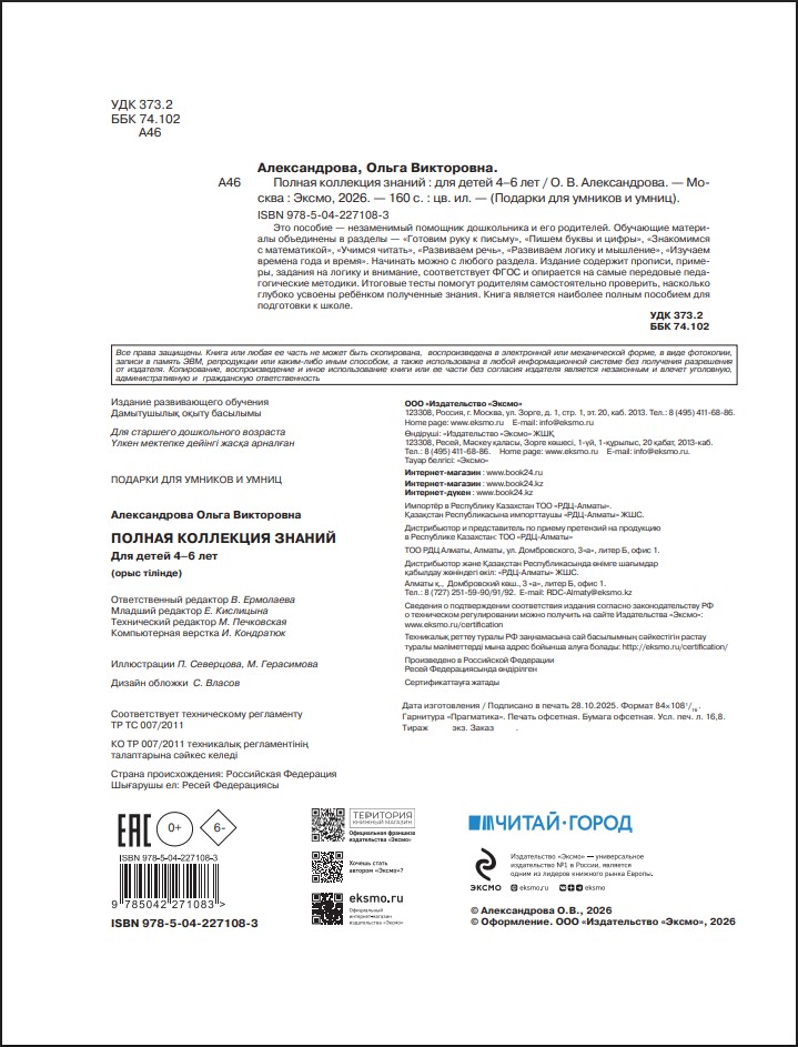 В конце книги – итоговые тесты, по которым легко самостоятельно проверить, как малыш усвоил знания. Роскошное подарочное издание украсит домашнюю библиотеку и станет прекрасным подарком на день рождения, 1 сентября, 8 марта, 23 февраля, Новый год, выпускной в детском саду, летние каникулы, да и просто без повода.