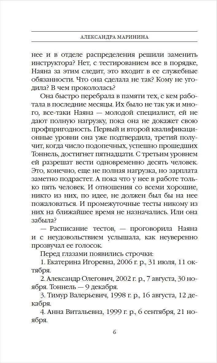 В этом романе Александра Маринина остаётся верна себе – точная психология, острое социальное чутьё и цепкий детективный нерв. Однако автор впервые вплетает в повествование сюжетную линию из будущего. Благодаря этому можно взглянуть на преступление так, как его увидят через десятки лет, когда правда уже никому не нужна.