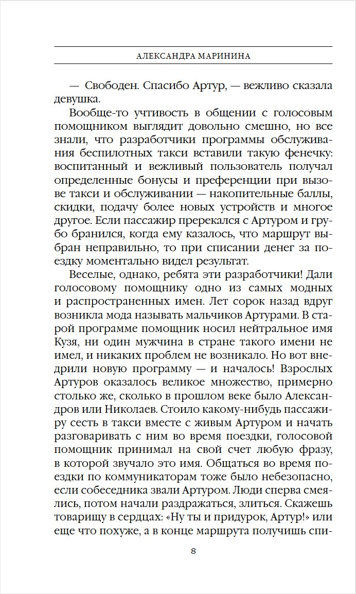 В этом романе Александра Маринина остаётся верна себе – точная психология, острое социальное чутьё и цепкий детективный нерв. Однако автор впервые вплетает в повествование сюжетную линию из будущего. Благодаря этому...