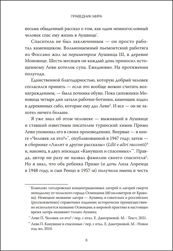 «Я убежден, что именно Лоренцо я обязан тем, что остался жив», – писал итальянский поэт и прозаик Примо Леви в своих воспоминаниях «Человек ли это?». Но кем был тот, о ком он говорит с такой признательностью?