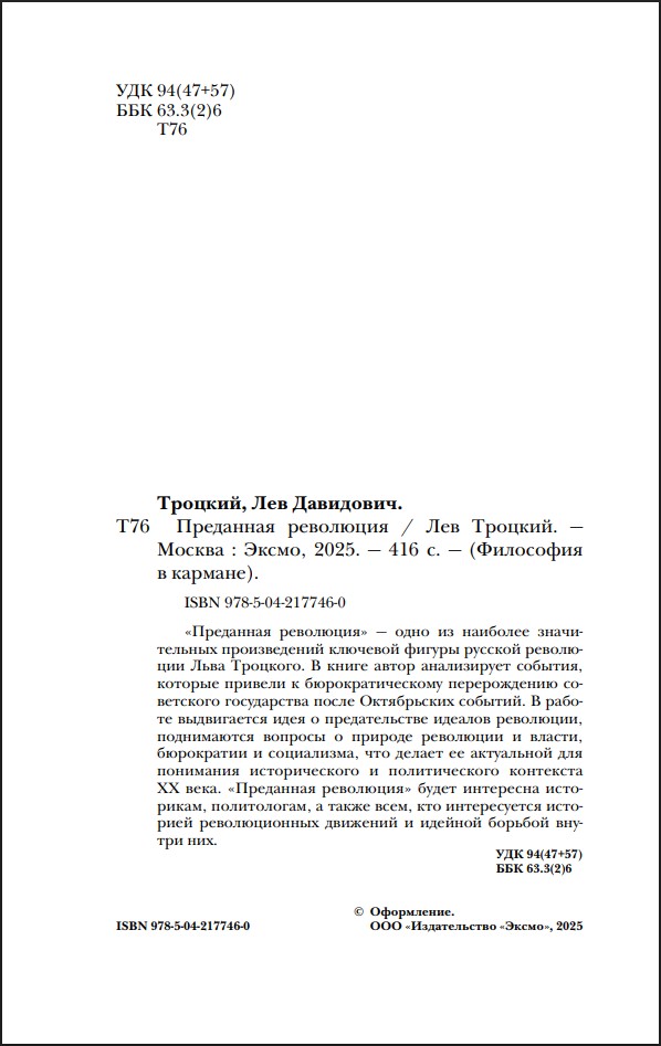 Оставить отзыв«Преданная революция» Льва Троцкого – это глубокий анализ трансформации Советского Союза из революционного социалистического государства в тоталитарную бюрократическую структуру.