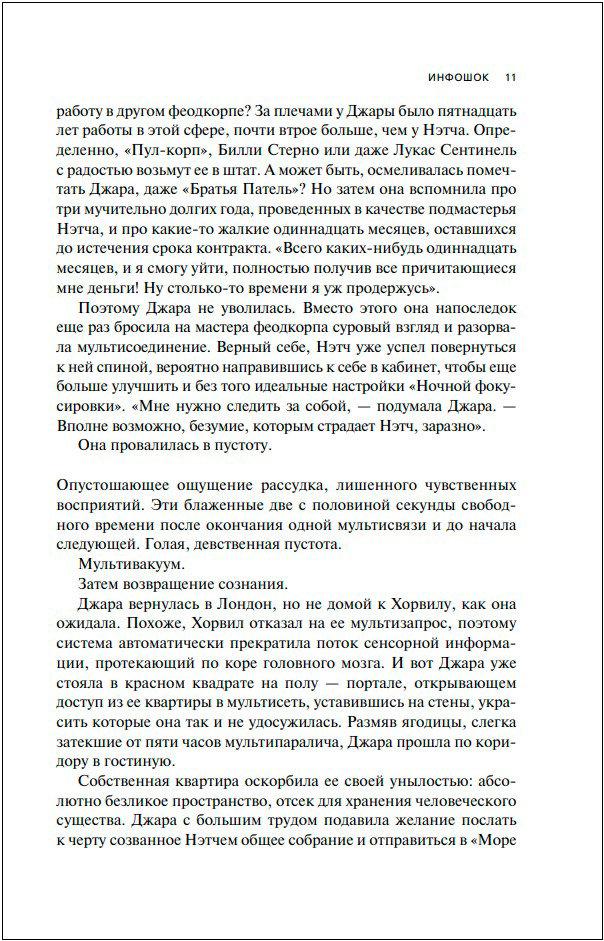 Тем временем над всем нависает призрак инфошока – смертельного всплеска данных, который может разрушить био-логические сети и вернуть весь мир в Темные века.