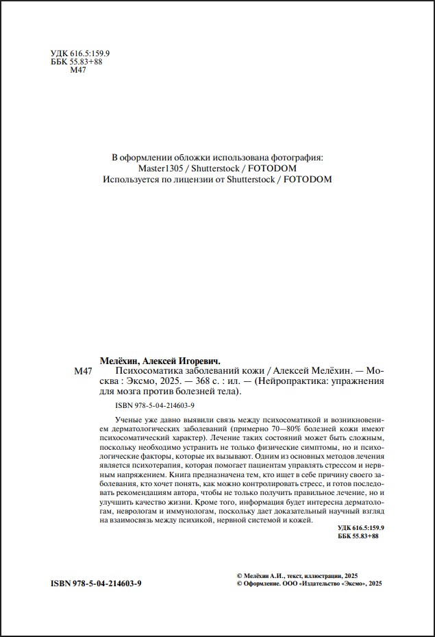 Книга будет полезна всем, кто столкнулся с кожными болезнями, кому важно понимать свое состояние и контролировать стресс. Кроме того, информация будет интересна дерматологам, иммунологам и неврологам, поскольку дает доказательный научный взгляд на взаимосвязь между психикой, нервной системой и кожей.