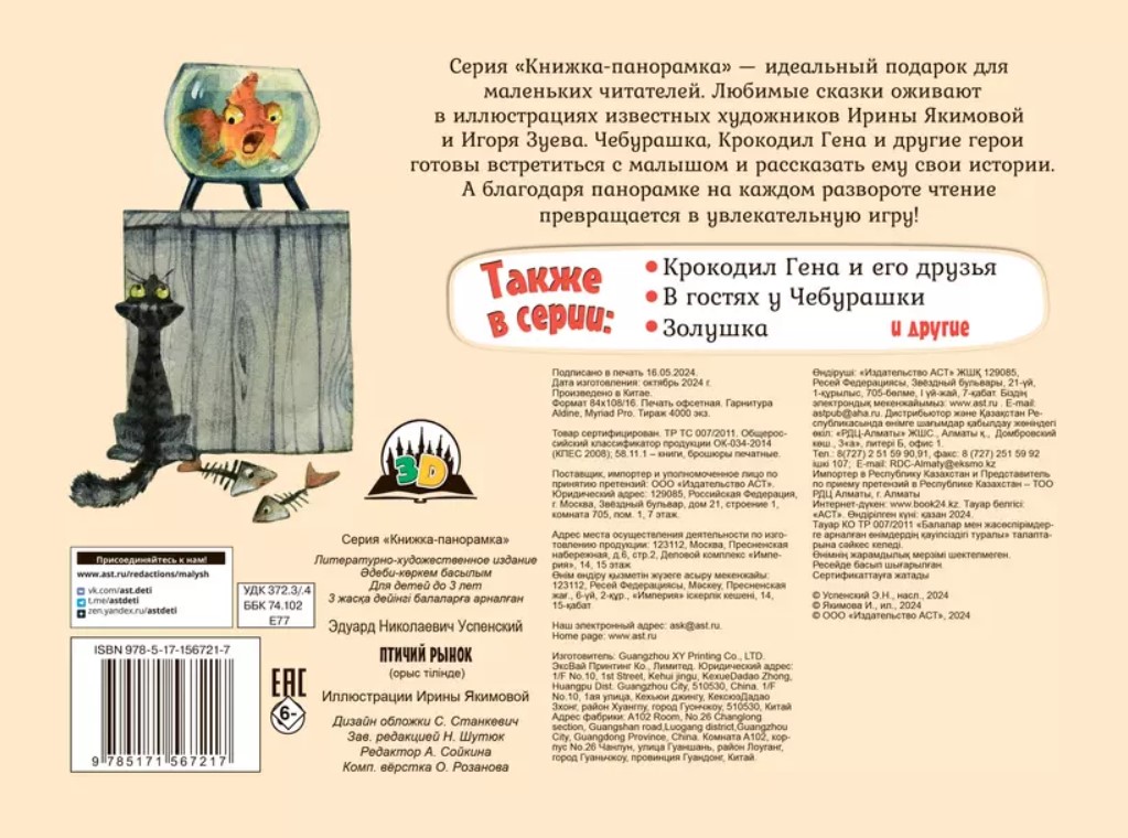 Серия «Книжка-панорамка» – идеальный подарок для маленьких читателей! Любимые сказки оживают в иллюстрациях известных художников Ирины Якимовой и Игоря Зуева. Чебурашка, Крокодил Гена и другие герои готовы встретиться с малышом и рассказать ему свои истории.