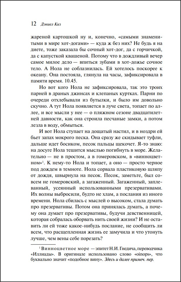 Оставить отзывДэниел Киз, долгое время изучавший психопатологии, провел немало часов в психиатрических лечебницах со специалистами, работавшими с пациентами, у которых наблюдались редкие расстройства. В результате появились его романы, в которых детально показан самый хрупкий, самый непредсказуемый и самый интересный механизм – человеческая психика.