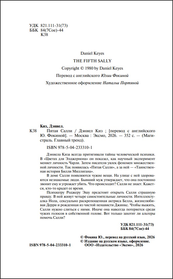 Дэниела Киза всегда притягивали тайны человеческой психики. В «Цветах для Элджернона» он показал, как научный эксперимент меняет личность Чарли. Затем писателя увлек феномен множественной личности. Так появилась «Пятая Салли», а за ней – «Таинственная история Билли Миллигана».