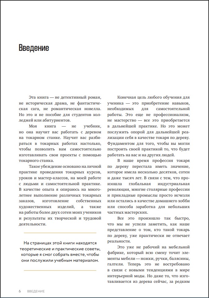 Подробно разобраны техника безопасности и правильная настройка инструмента, выбор оборудования и материалов, ключевые техники и последовательность операций, а также практическое изготовление конкретных вещей – от деревянной посуды до шкатулки. Методика автора состоит в пошаговости и трехступенчатой системе каждого урока, что даст вам быстро освоить все приемы и прийти к стабильному результату.