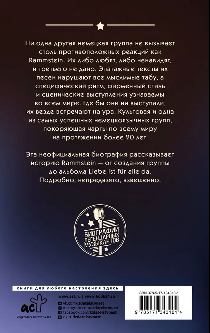 Эта неофициальная биография рассказывает историю Rammstein – от создания группы до альбома Liebe ist fur alle da. Подробно, непредвзято, взвешенно.