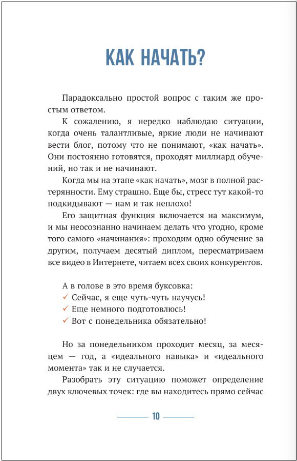 Написанная на стыке психологии и маркетинга эта книга будет полезна не только начинающим блогерам, которые, безусловно, благодаря ей узнают всё о ведении соцсетей, но и всем, кто потерялся и отчаянно ищет свой путь. Вы найдете полезные чек-листы, советы от профессионала, мотивирующие истории, а главное – обретете уверенность в своих силах, вдохновение самовыражаться, творить и пробовать новое.