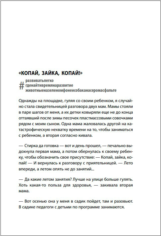 Оставить отзывМода на раннее развитие стимулирует рынок производить всё новые товары для удовлетворения потребностей родителей. Именно так: потребность родителей, но не детей. В своей новой книге педагог и психолог Анна Быкова предлагает родителям опираться не на модные педагогические системы и продвинутые игрушки, а подключить свой личный опыт и творческую энергию. Мамы и папы, которым интересно проводить время с детьми, по своим возможностям и развивающему потенциалу превосходят любые кружки, школы, центры, а также любые таблицы каких угодно знаний и навыков.
