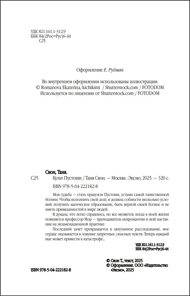 Моя судьба – стать оракулом Пустоши, устами самой таинственной богини. Чтобы исполнить свой долг, я должна соблюсти несколько условий: получить магическое образование, быть верной своей богине и не иметь привязанностей в мире людей.