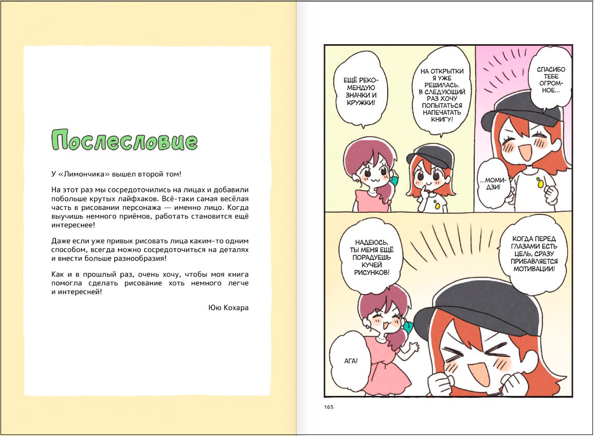 Узнайте больше о рисовании персонажей в стиле манга с начинающей художницей Лимончиком! Лимончик научилась всем основам рисования, пришло время двигаться дальше! Следующий шаг – создание своих персонажей. Как оживить героев и создать уникальные образы? Вместе с Лимончиком и её кузиной Момидзи, профессиональной художницей, вы узнаете много полезных советов для создания дизайна персонажей манги: начинать с простых форм; менять пропорции и ракурсы лица; использовать объём и разные материалы; добавлять аксессуары: очки, головные уборы, украшения; передавать черты характера через эмоции и образ; экспериментировать и не бояться пробовать новое! Книга станет незаменимой для начинающих художников и поклонников аниме и манги. В лёгкой и занимательной форме Лимончик и её кузина расскажут и покажут вам, как создать уникальных персонажей и передать их черты характера, эмоции и стиль!