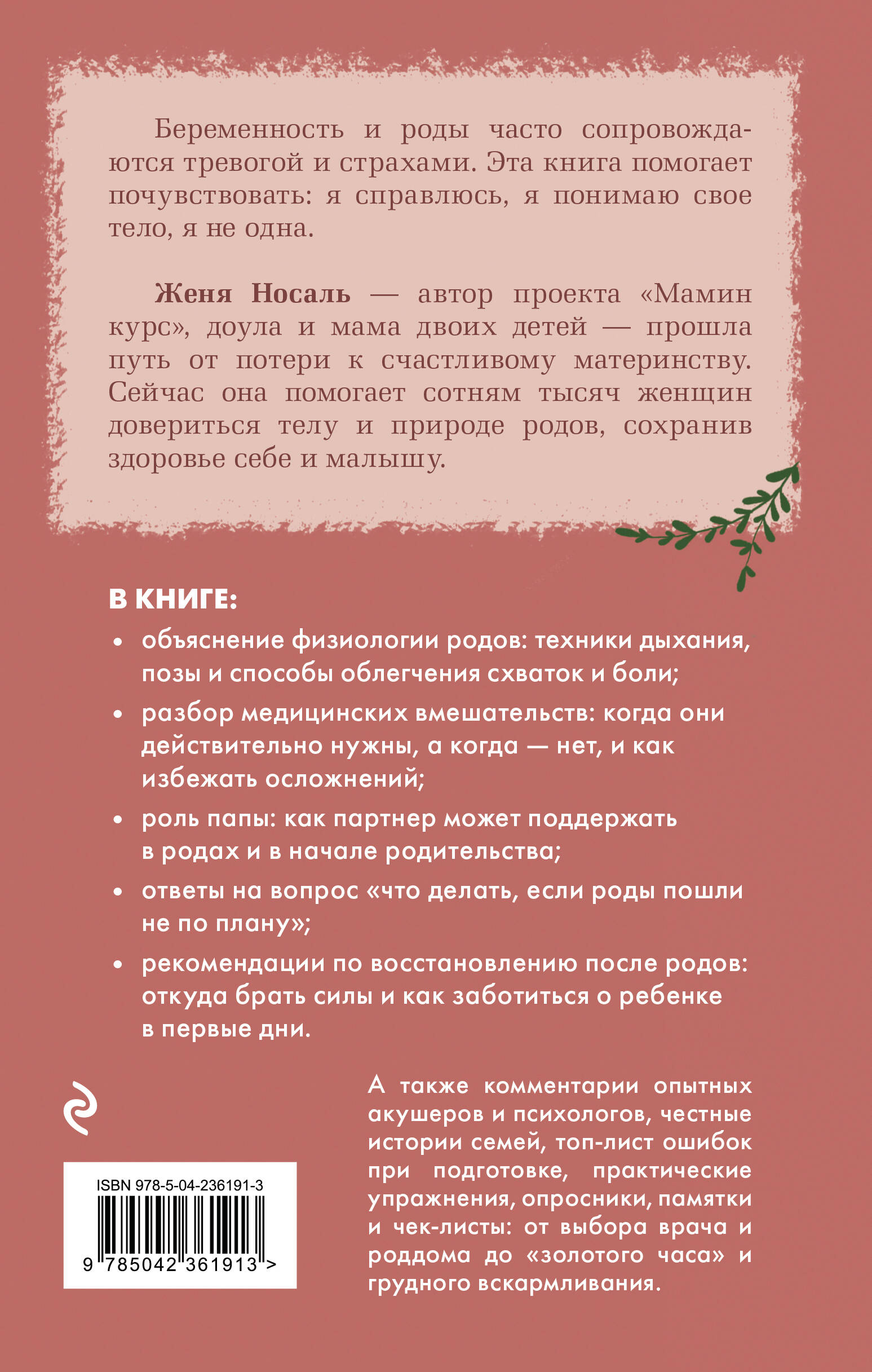 Женя Носаль, автор «Маминого курса», доула и мама двоих детей, делится опытом и знаниями: как подготовить тело к родам, выбрать врача и роддом; как избежать осложнений и что делать, если роды пошли не по плану; какую роль играет папа и как партнерские роды становятся опорой, а не испытанием.
