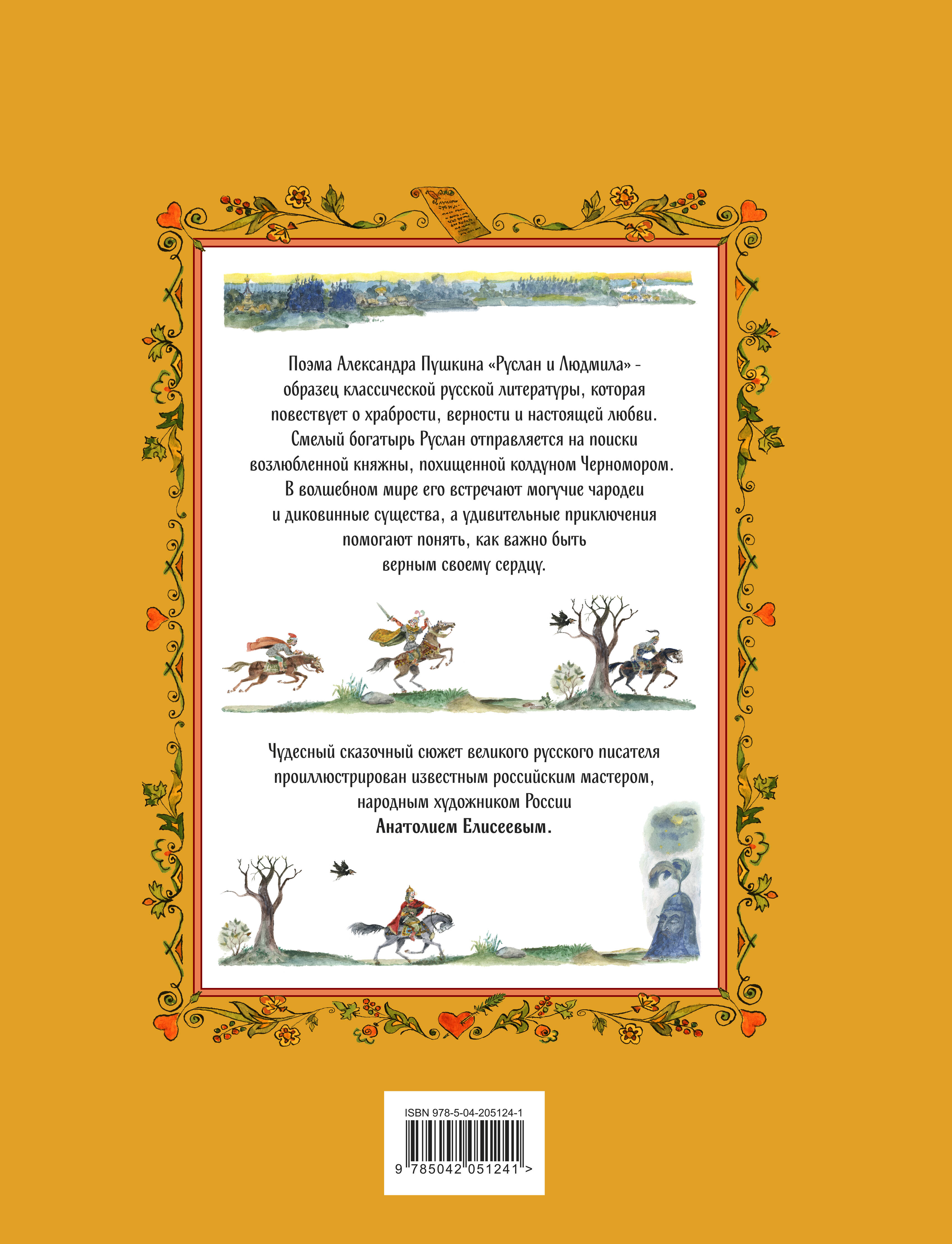 Изящные и тонкие иллюстрации знаменитого мастера, народного художника России Анатолия Михайловича Елисеева придают новому изданию «Руслана и Людмилы» изысканность и высокий стиль.