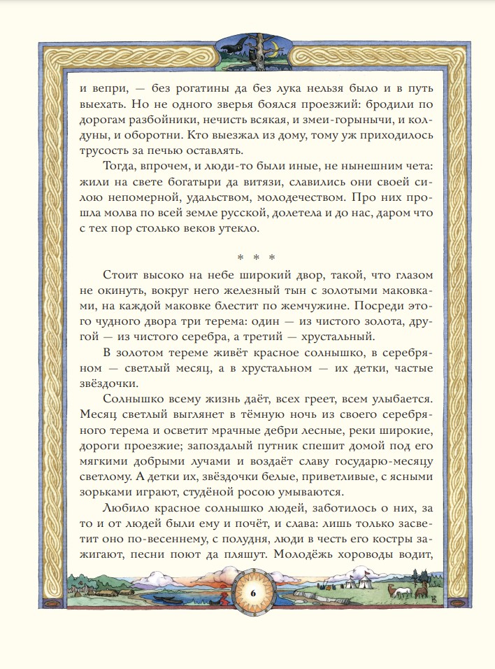 Подарочное издание большого формата. Твёрдый переплёт с тиснением фольгой. Плотная белая бумага. Чёткий, крупный шрифт. Полноцветные иллюстрации в фантазийном русском стиле.