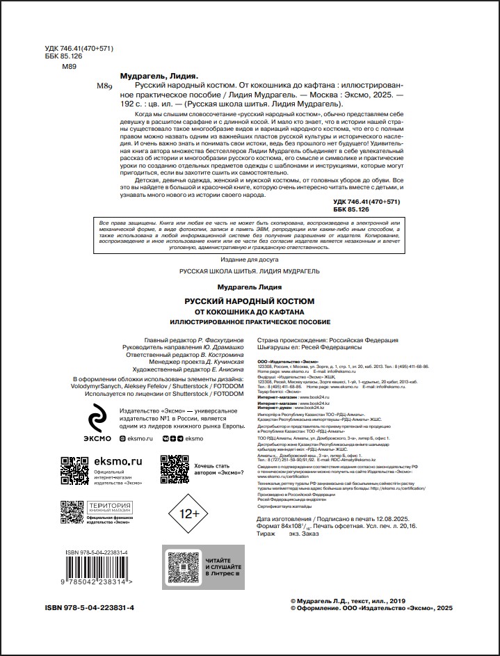 Уникальная энциклопедия автора множества бестселлеров Лидии Мудрагель сочетает в себе увлекательный рассказ об истории, многообразии, традициях русской народной одежды с практическими уроками по пошиву самых востребованных предметов народного костюма.