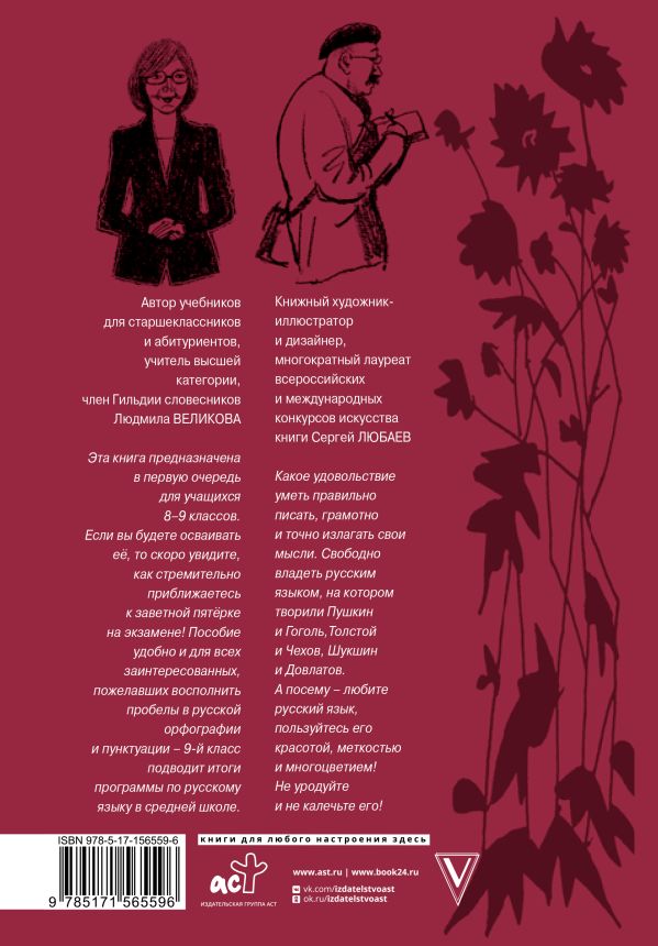 Эта книга предназначена в первую очередь для учащихся 8-9 классов: именно девятиклассникам предстоит сдавать свой первый серьёзный экзамен, и готовиться к нему следует заранее. Если вы пошагово будете осваивать её учебный материал, то скоро увидите, как стремительно приближаетесь к заветной пятёрке на экзамене! Кроме того, пособие чрезвычайно удобно и для всех заинтересованных, пожелавших восполнить пробелы в русской орфографии и пунктуации – девятый класс подводит итоги программы по русскому языку в средней школе.