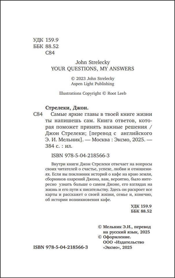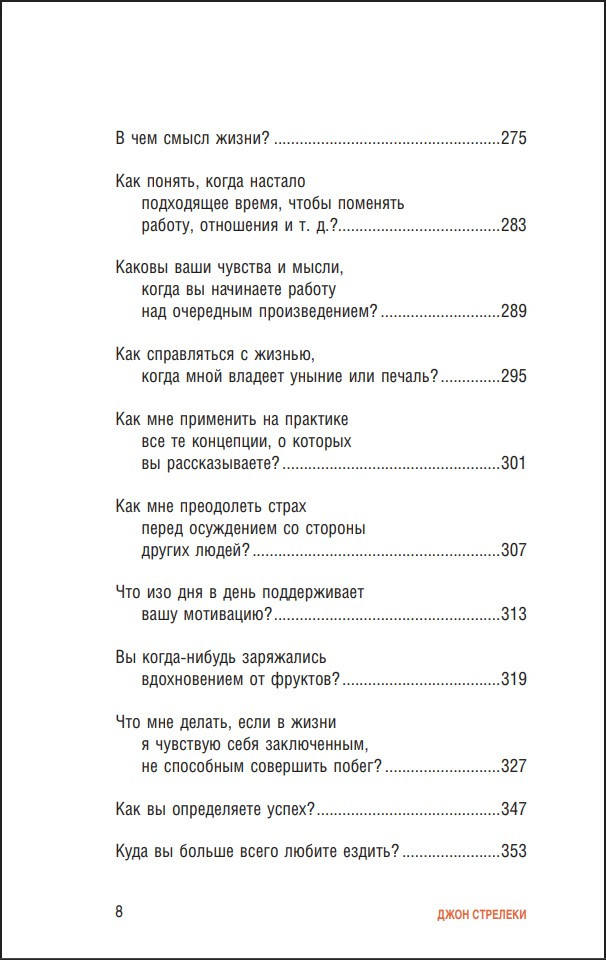 Новая книга-откровение от Джона Стрелеки. Она станет бесценным подарком для поклонников историй о кафе на краю земли, ведь в ней Джон отвечает на самые насущные (и даже на немного странные) вопросы читателей, раскрывает подробности своей биографии и рассказывает, что позволило ему написать истории, которые стали любимы людьми по всему миру.