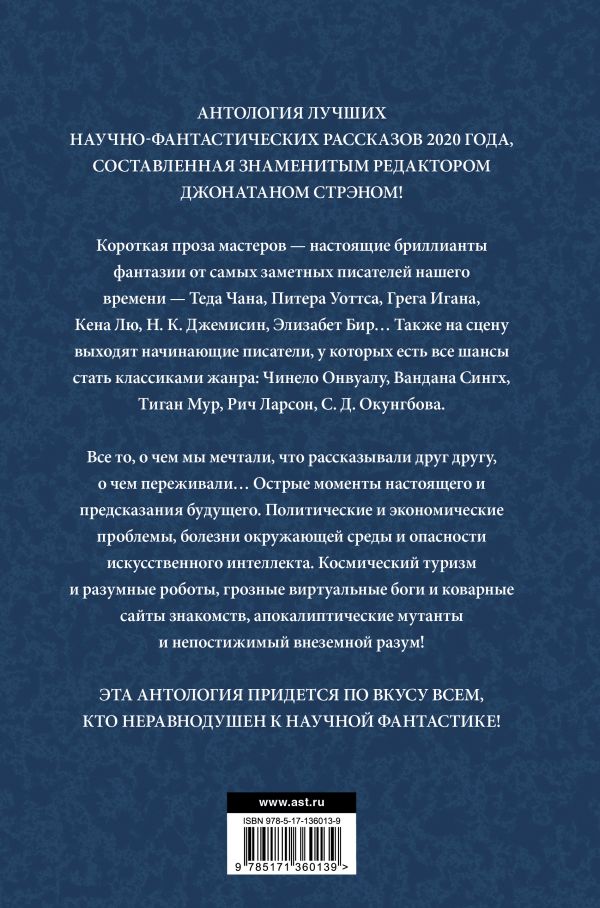 Антология лучших научно-фантастических рассказов 2020 года, составленная знаменитым редактором Джонатаном Стрэном!
