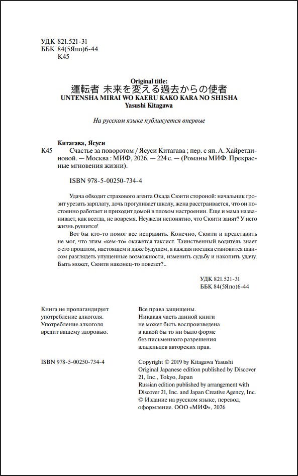 Таинственный водитель знает о его прошлом, настоящем и даже будущем, а каждая поездка становится шансом разглядеть упущенные возможности, изменить судьбу и накопить удачу. Быть может, Сюити наконец-то повезет?..