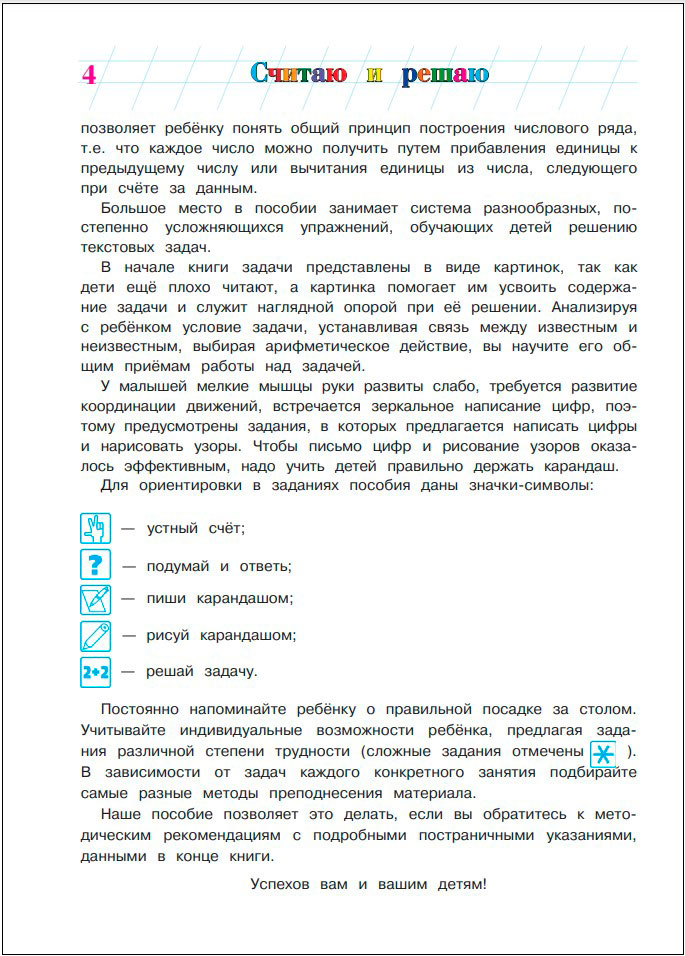 Легендарная, давно полюбившаяся родителям и педагогам серия обучающих пособий для развития ребенка и подготовки к школе! Проверенная на практике и показавшая свою эффективность методика, умело сочетающая современные технологии обучения с лучшими классическими традициями российского образования, будет способствовать развитию у дошкольника математического мышления и познавательных способностей.