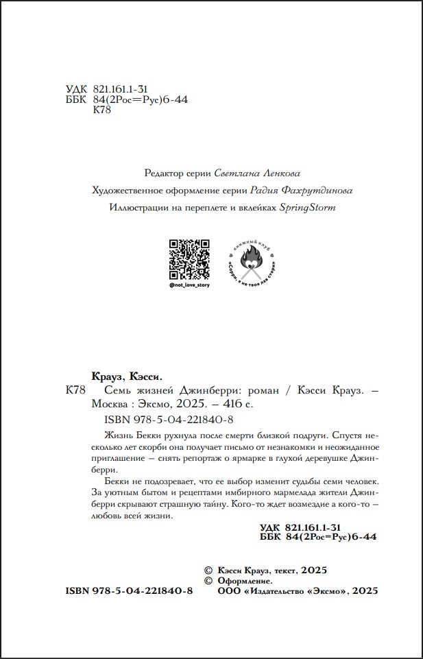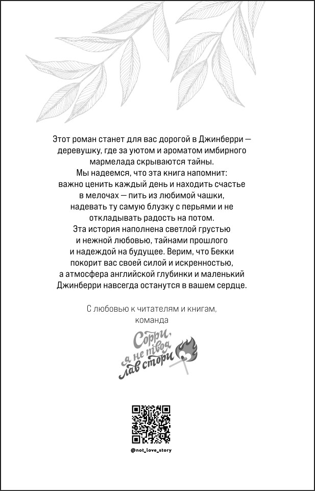 Бекки не подозревает, что ее выбор изменит судьбы семи человек. За уютным бытом и рецептами имбирного мармелада жители Джинберри скрывают страшную тайну. Кого-то ждет возмездие, а кого-то – любовь всей жизни.