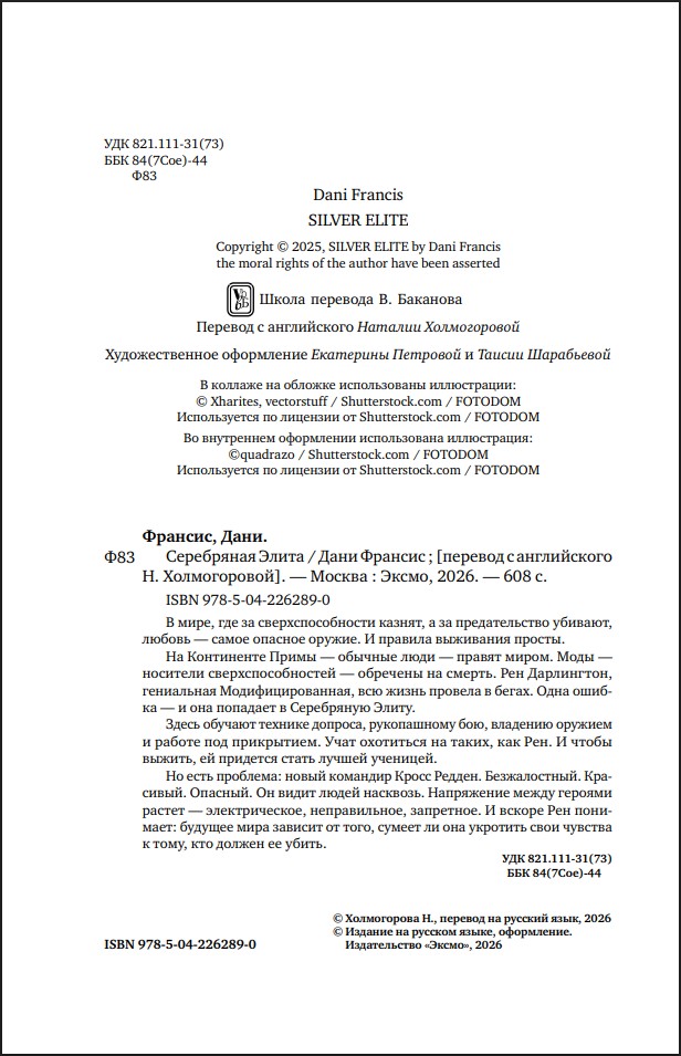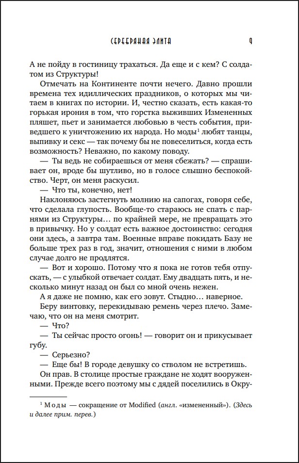 Рен Дарлингтон, гениальная Модифицированная, всю жизнь провела в бегах. Одна ошибка – и она попадает в Серебряную Элиту. Здесь обучают технике допроса, рукопашному бою, владению оружием и работе под прикрытием. Учат охотиться на таких, как Рен.