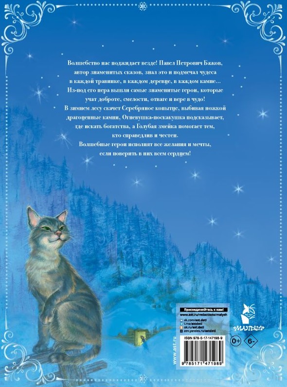 В зимнем лесу скачет Серебряное копытце, выбивая ножкой драгоценные камни, Огневушка-Поскакушка подсказывает, где искать богатства, а Голубая Змейка помогает тем, кто справедлив и независтлив. Волшебные герои исполнят все желания и мечты, если поверить в них всем сердцем! В книге роскошные иллюстрации Галины Шакицкой.