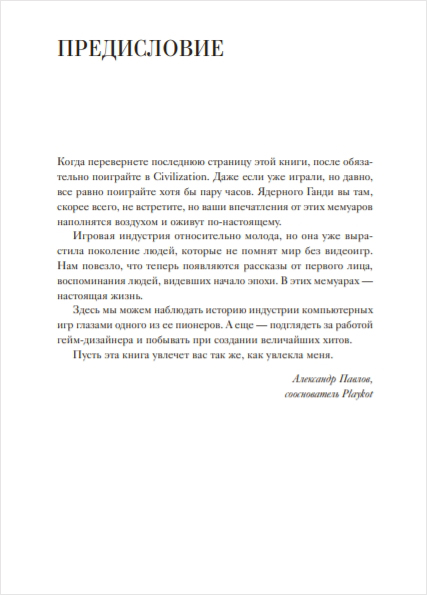 Книга будет интересна не только геймерам и разработчикам, но и всем любителям игр, в особенности поклонникам игры «Цивилизация».