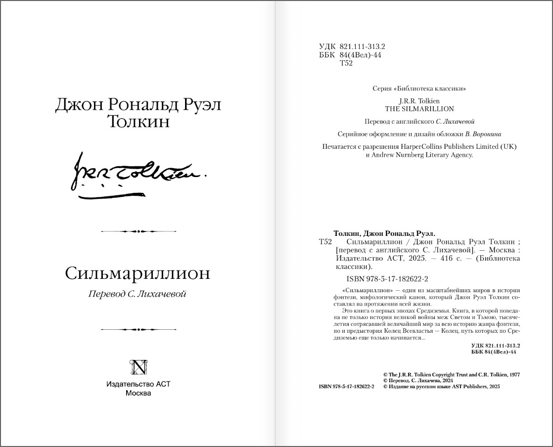 Описание книги Сильмариллион. Перевод С. Лихачевой (серия Библиотека Классики):
