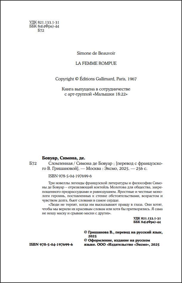 Три пули в лоб. Безапелляционно честные новеллы-монологи легенды литературы и философии Симоны де Бовуар, вскрывающие наносное и задающие зубодробительные вопросы всем нам.