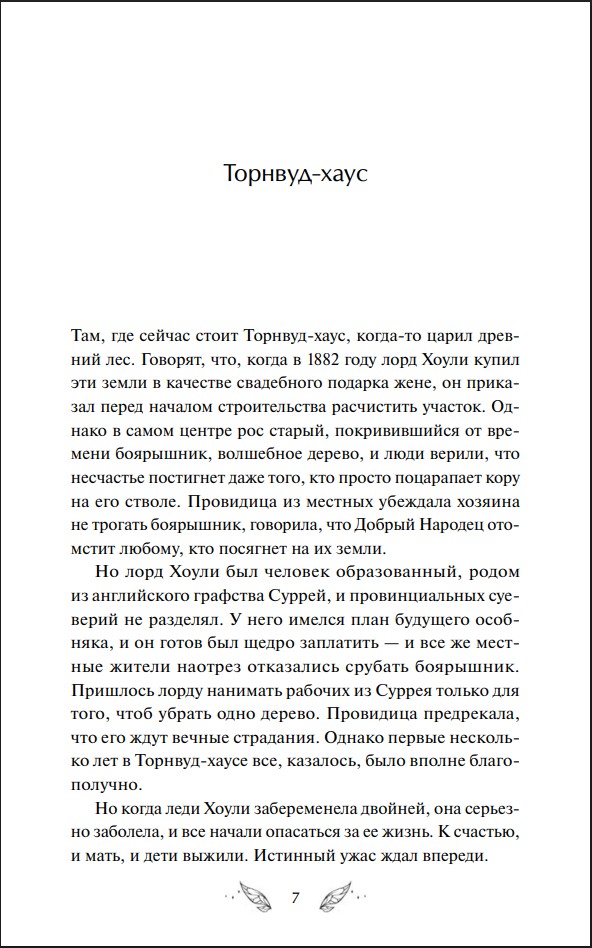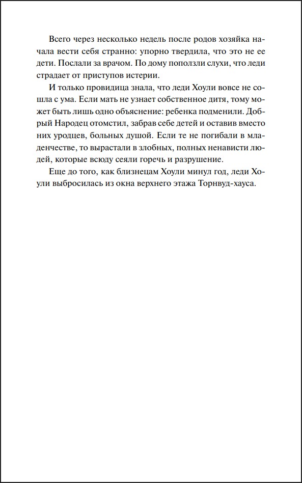 Сто лет назад Торнвуд принимал другого незваного гостя. Американский антрополог приехал в Ирландию, чтобы собирать предания о фейри. Его помощницей стала дочь фермера Анна – и вскоре девушка столкнулась с тайной, которая поставила под угрозу все, во что она верила. Свою историю Анна записывала в дневник, который теперь оказался в руках Сары...