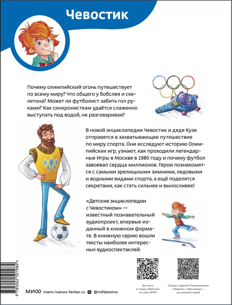 Почему Олимпийский огонь путешествует по всему миру? Может ли футболист забить гол руками? Правда ли, что физкультура помогает вырасти? В новой энциклопедии Чевостик и дядя Кузя отправятся в захватывающее путешествие по миру спорта.