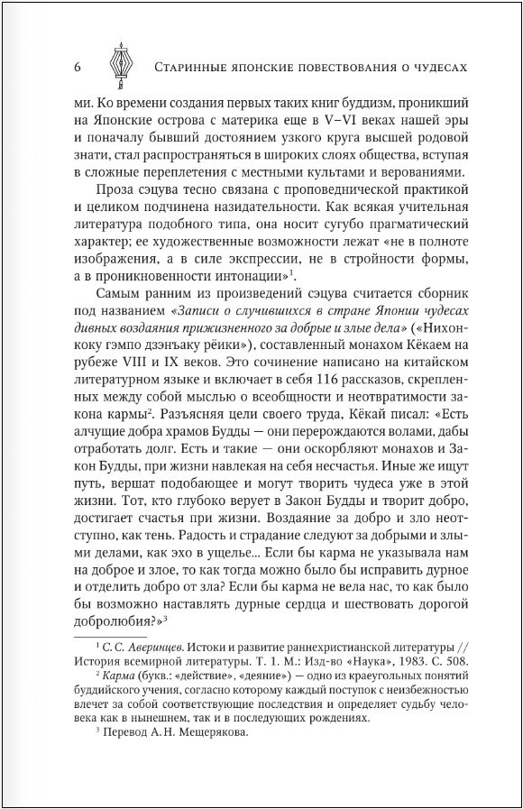 В настоящее издание включены переводы из наиболее известных и вместе с тем разных по типу, жанру и времени создания памятников старинной японской прозы о чудесах – от ранних сборников коротких нравоучительных рассказов, где самые невероятные события мыслятся не менее реальными и достоверными, чем любое житейское происшествие, до произведений новеллистики позднего Средневековья, в которых сверхъестественное окутано маревом тайны и предстает во всей своей интригующей и пугающей инаковости.