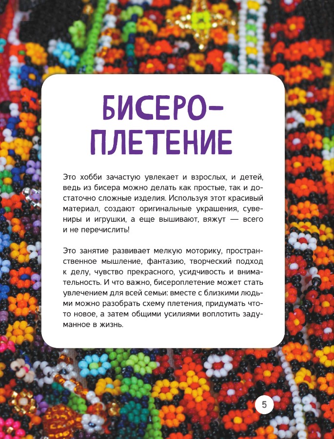 Бисероплетение, квиллинг, лепка из полимерной глины развивают мелкую моторику, простран- ственное мышление, творческий подход к делу, усидчивость и внимательность. Это увлечение может стать прекрасным времяпровождением не только для вас, но и для всей семьи.