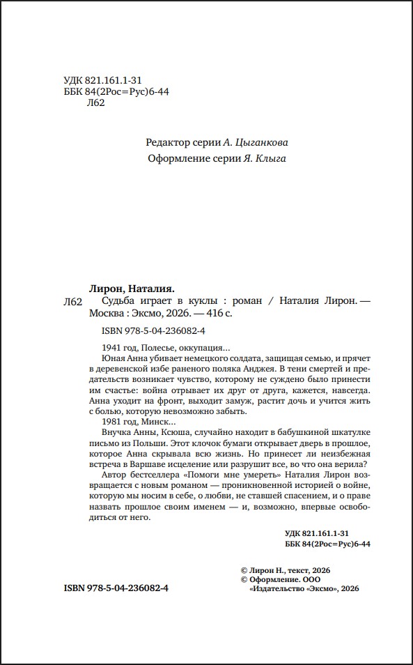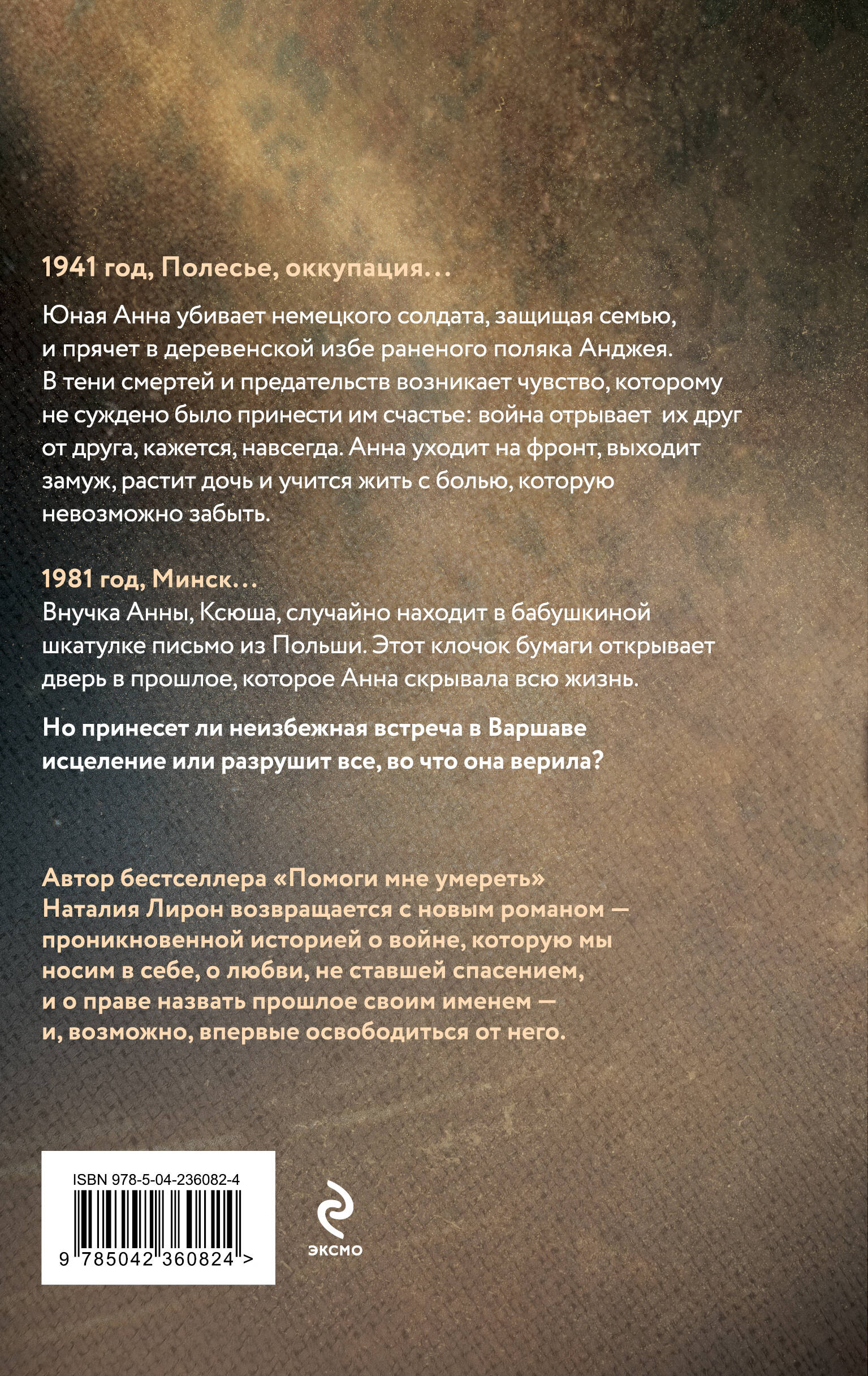 Автор бестселлера «Помоги мне умереть» Наталия Лирон возвращается с новым романом – проникновенной историей о войне, которую мы носим в себе, о любви, не ставшей спасением, и о праве назвать прошлое своим именем – и, возможно, впервые освободиться от него.