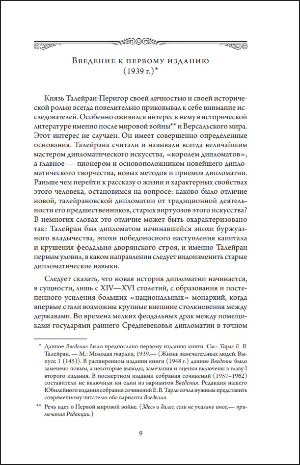 В шестом томе собрания сочинений представлен труд «Талейран», в котором Тарле исследует жизнь и карьеру одного из самых выдающихся и противоречивых дипломатов Европы, сумевшего, ловко приспосабливаясь к смене политических режимов в неспокойной Франции рубежа XVIII—XIX веков, удержаться на самой вершине власти не одно десятилетие. Эта работа дополнена в издании статьями и лекциями Тарле, в которых раскрываются тонкости европейской дипломатии того же периода.