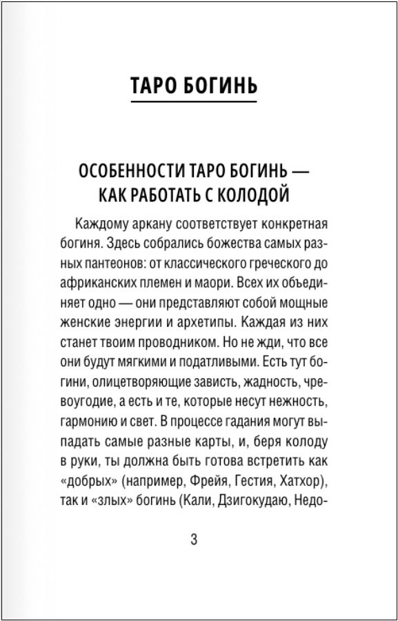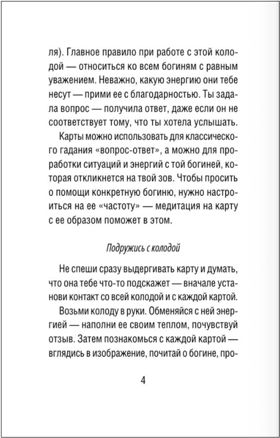 Работая с этой колодой, вы раскроете свою женскую энергию. Она необходима для того, чтобы получать знания, подсказки, интуитивные предчувствия. Это энергия течения времени. И великие Богини научат вас, как его контролировать.