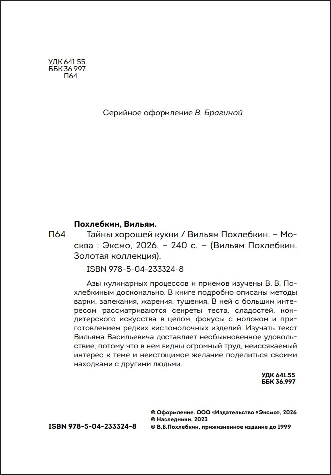 Оставить отзывЗа 15 лет в издательстве вышло более 150 тыс. экземпляров книг В.В. Похлебкина. И спрос на этого замечательного автор не уменьшается. Новая серия «Вильям Похлебкин. Золотая коллекция» говорит сама за себя.