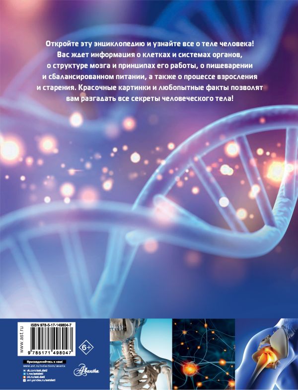 «Тело человека» – это красочная энциклопедия, в которой вас ждет подробная информация об устройстве человеческого тела. Вы узнаете больше о внутренних и внешних органах, химическом составе тела человека и важнейших процессах жизнедеятельности: дыхании, кровообращении, пищеварении и взрослении. В каждом разделе вас также ждет один удивительный и неожиданный факт о человеке, который поможет вам удивить своих друзей и близких.